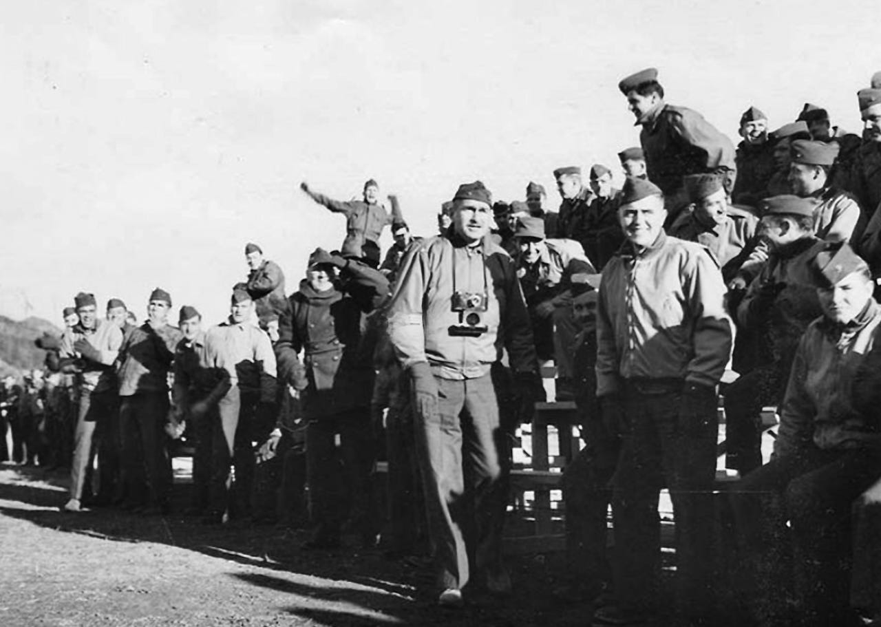 In the days before the game, Gerald Sanders organized another morale-booster: a Christmas event featuring a Japanese children’s choir. American veterans of the Pacific carnage were skeptical, Sanders later said, but in the end “sat there and they cried and they just really found that all Japanese weren’t bad that night….People felt good and walked out, talking, arms around each other.”